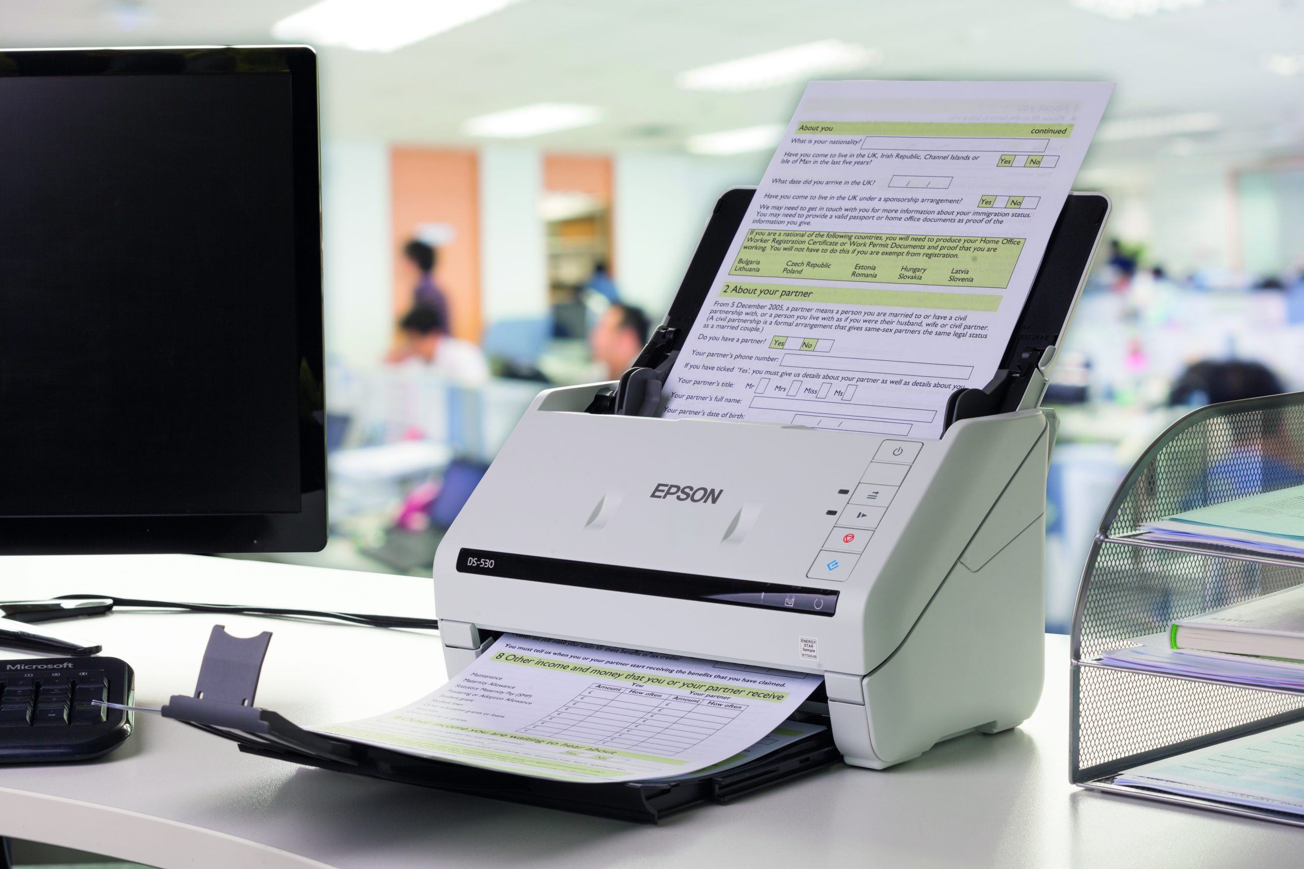 Mit dem branchenweit ersten langsamen Modus1 zum Scannen von gefalteten und empfindlichen Dokumenten bietet sich eine einfache Möglichkeit, anspruchsvolle Vorlagen zu erfassen. Das aktive Rolleneinzugssystem verhindert den gleichzeitigen Einzug von mehreren Seiten. Es sorgt außerdem dafür, dass jedes Blatt präzise eingezogen wird. Das Ausschalten der Doppeleinzugserkennung sorgt dafür, dass auch spezielle Unterlagen wie Umschläge oder Dokumente mit Post-It-Notizen erfasst werden können. Der automatische Scan-Modus ermöglicht die Verarbeitung einer großen Anzahl von Dokumenten als eine einzige Datei.